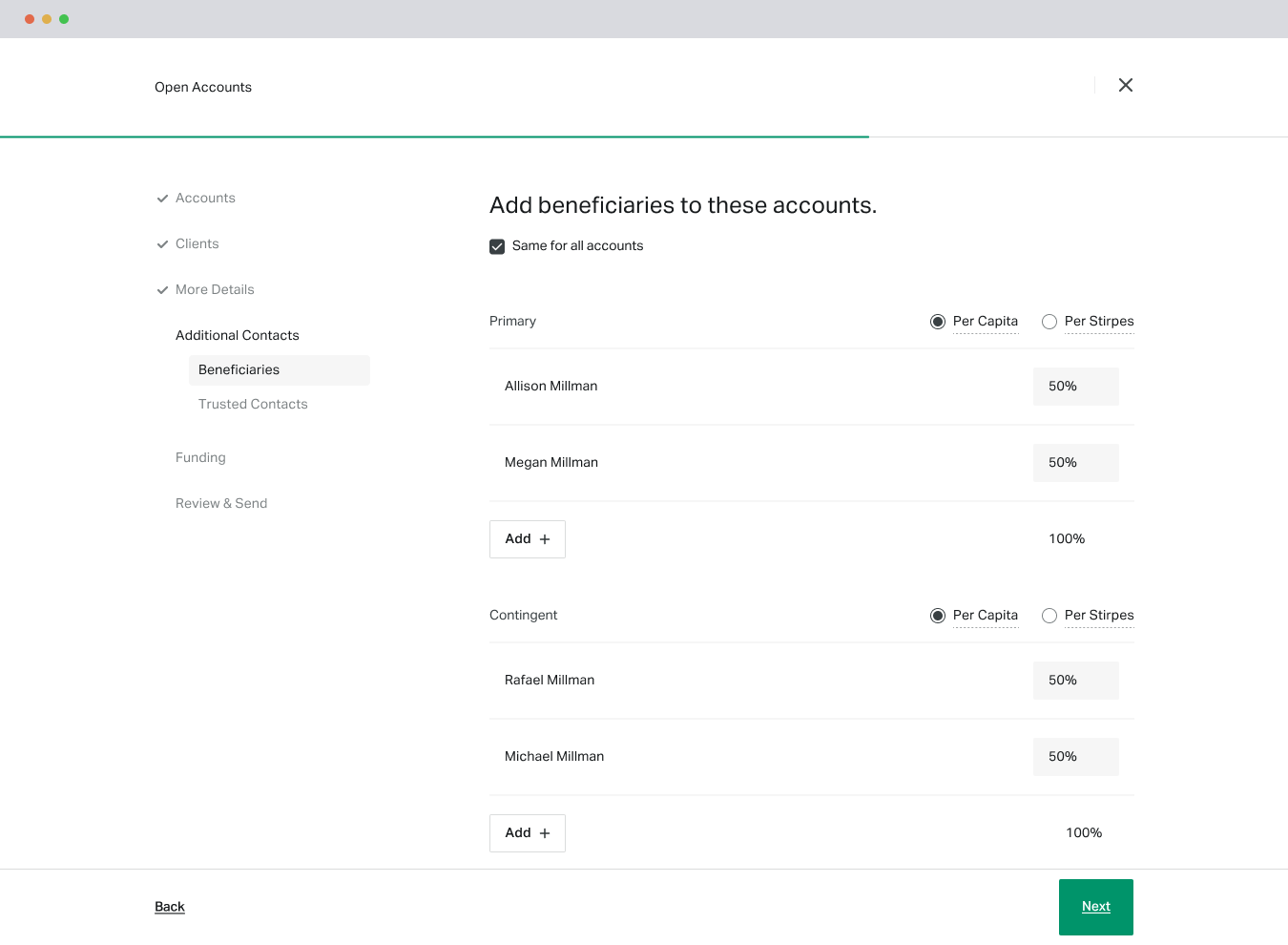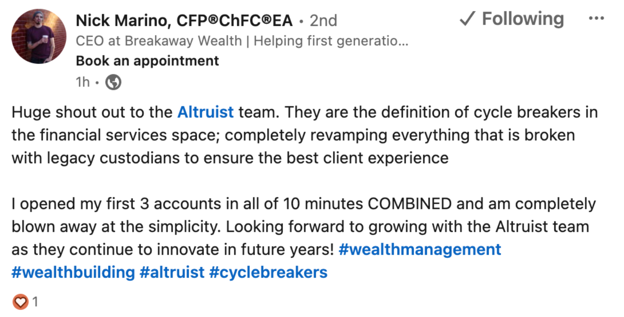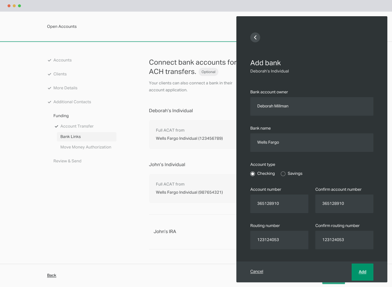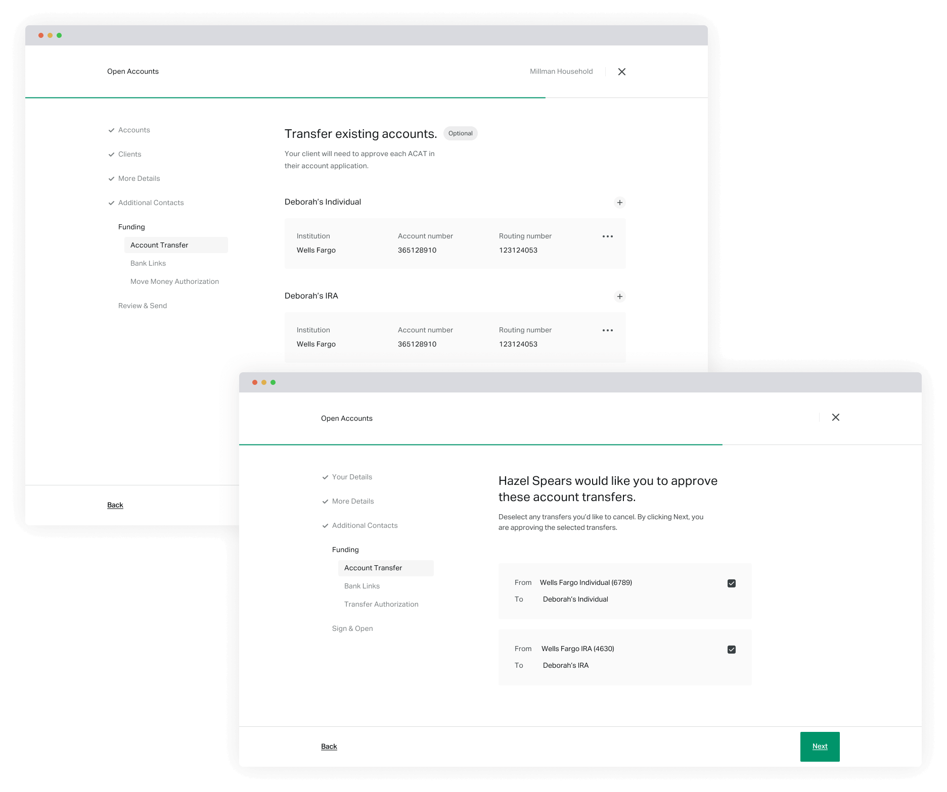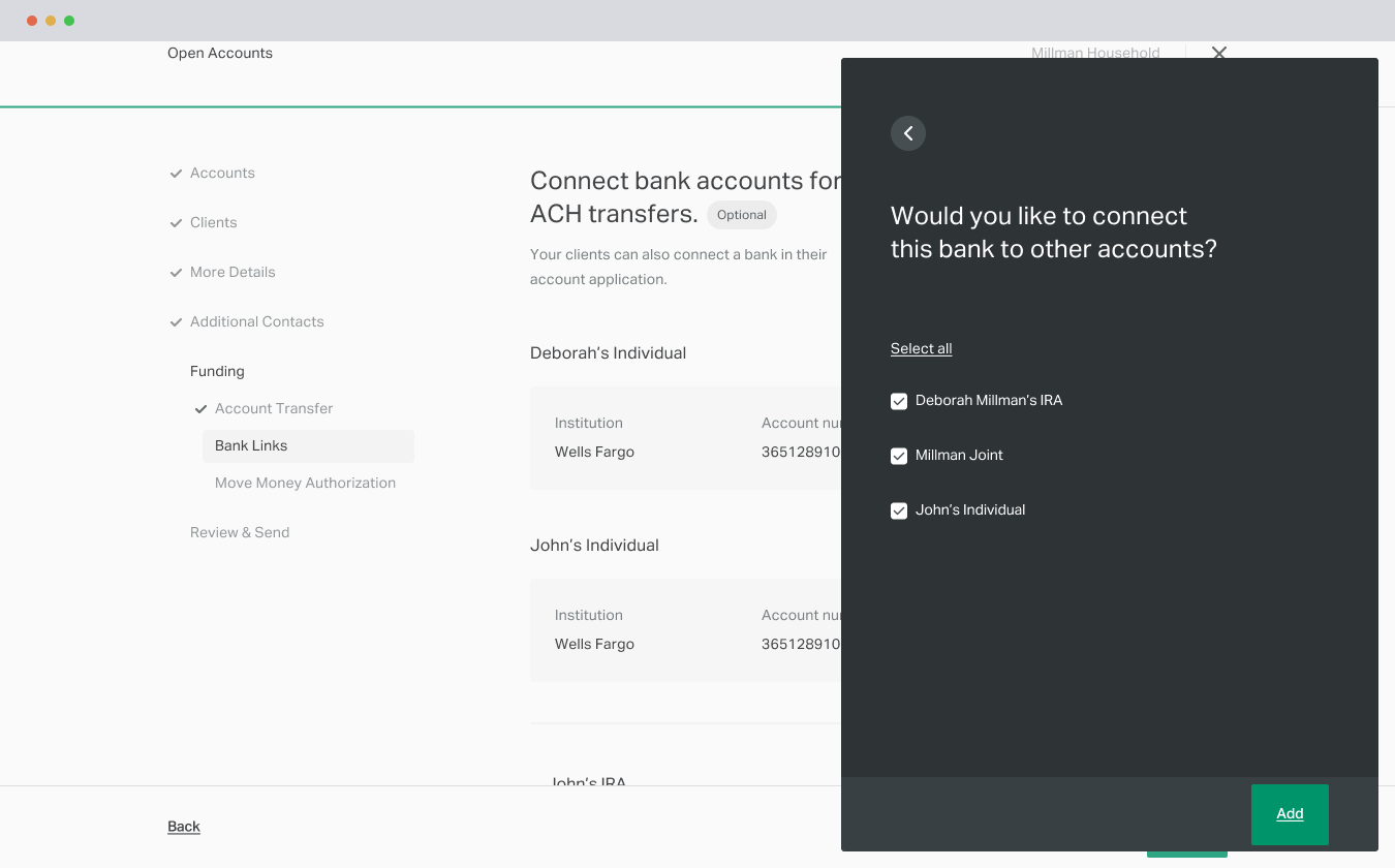 Advisors need to go through many steps to onboard a new client. They need to open multiple investment accounts, link bank accounts, transfer funds, and collect signed authorizations. With its redundant steps, contingent tasks, and lack of visibility, the onboarding process on Altruist had become painfully slow. It started to strain the advisor-client relationship and slow down a core piece of Altruist's revenue model.